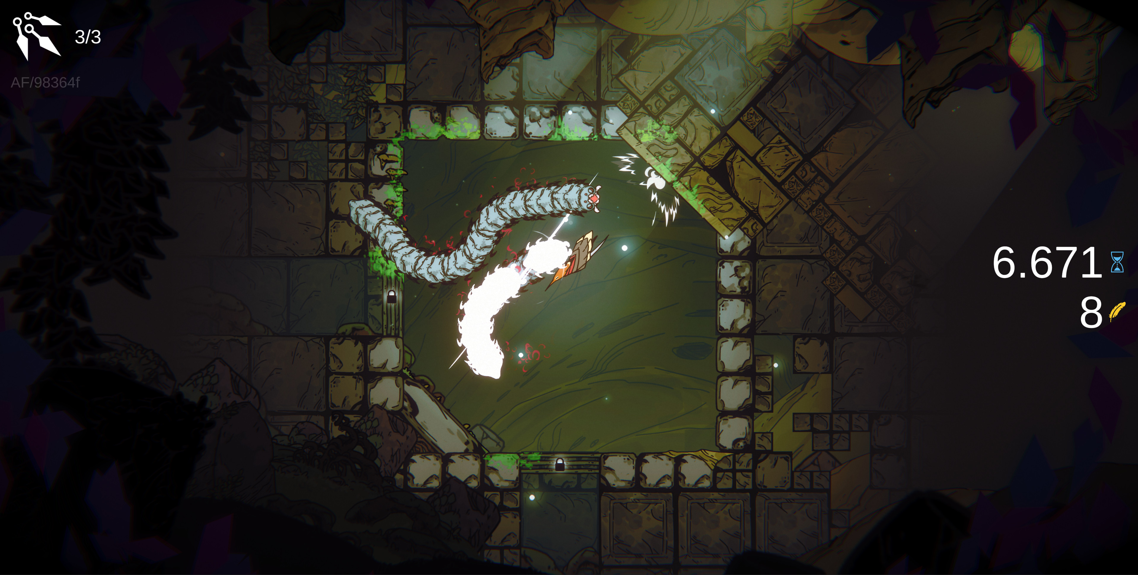 What if enemies only moved while the player was holding the aim? This would create a deliberate tradeoff where aiming not only sets up the player’s movement but also allows enemies to advance. To complement this, the aiming system could include a two-stage bar, similar to The Pathless: